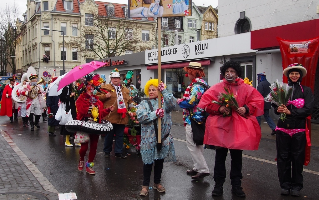 Künstler-Fußgruppe des „a performancelife e.V.“ beim Ehrenfelder Dienstagszug, Köln-Ehrenfeld, 9. Feb. 2016